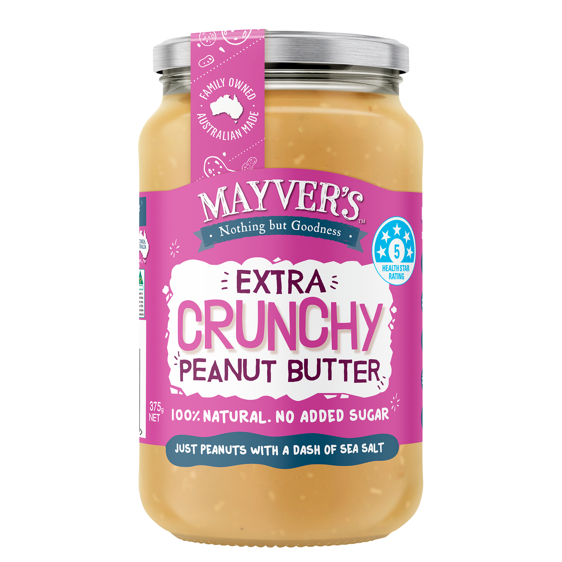 Mayver’s Extra Crunchy Peanut Butter is 60% crunchier than our regular Crunchy Peanut Butter and proudly made in Victoria using delicious high-oleic peanuts. Lightly roasted, mixed with the finest sea salt and ground to perfection, giving it a naturally sweet taste! Perfect on toast, by the spoon, or any way you love your peanut butter.