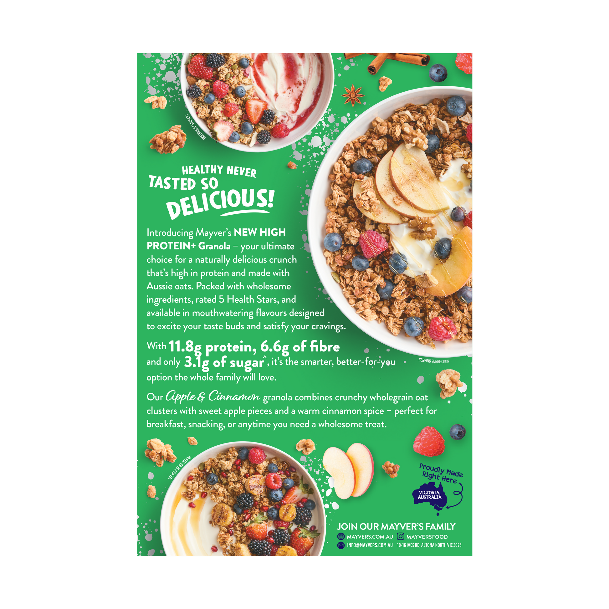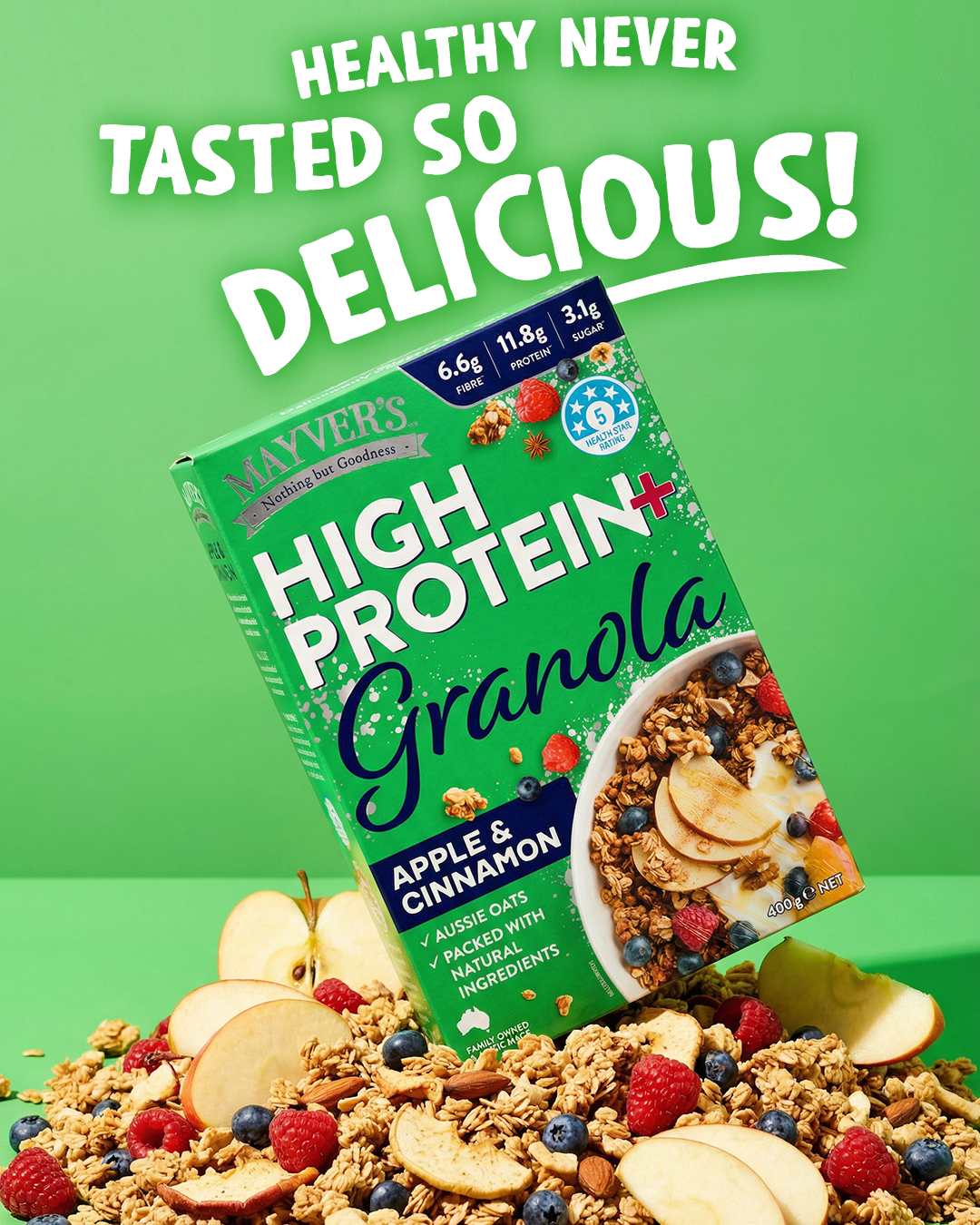 Mayver’s new range of High Protein+ Granola's are packed with wholesome ingredients, rated 5 Health Stars, and available in mouthwatering flavours designed to excite your taste buds and satisfy your cravings.