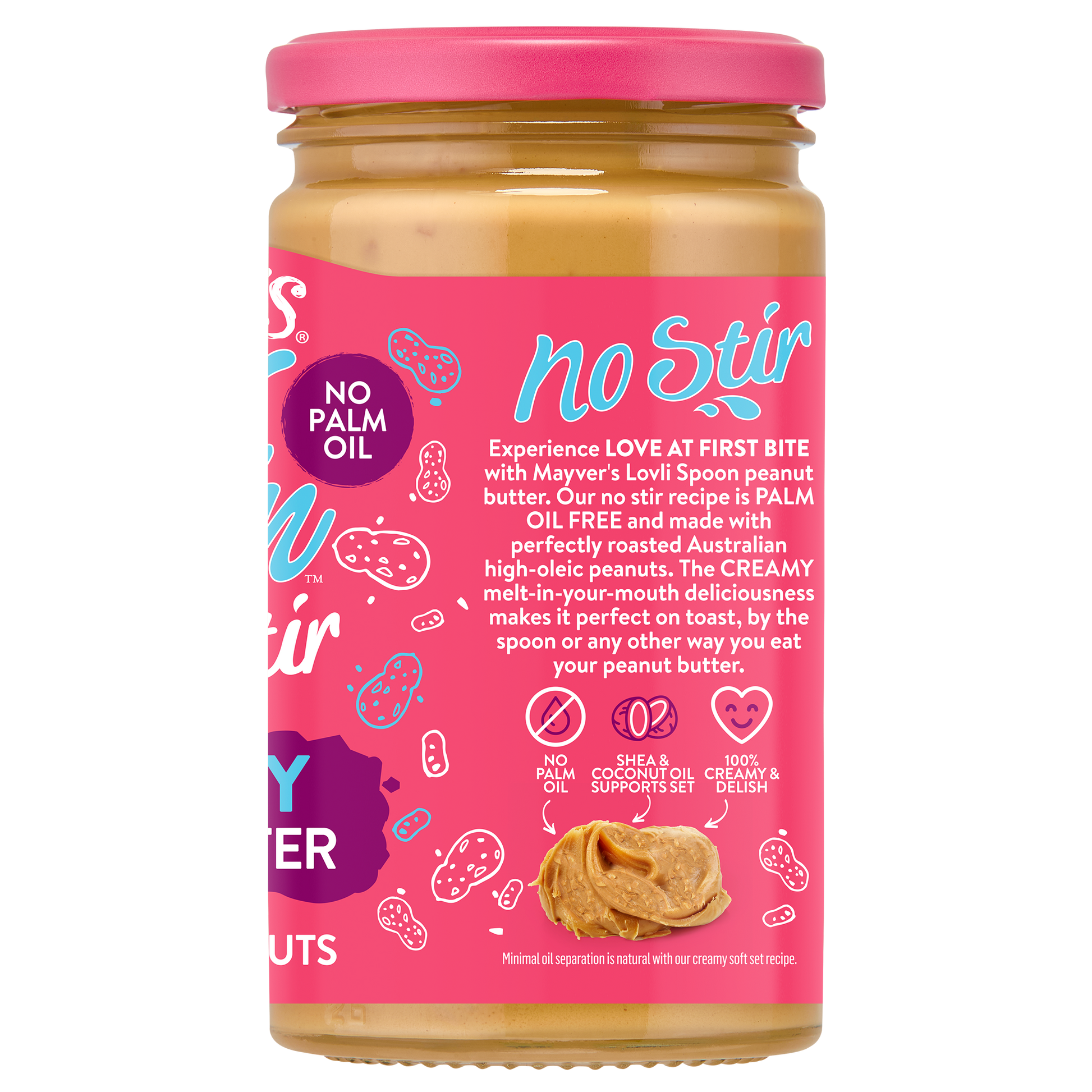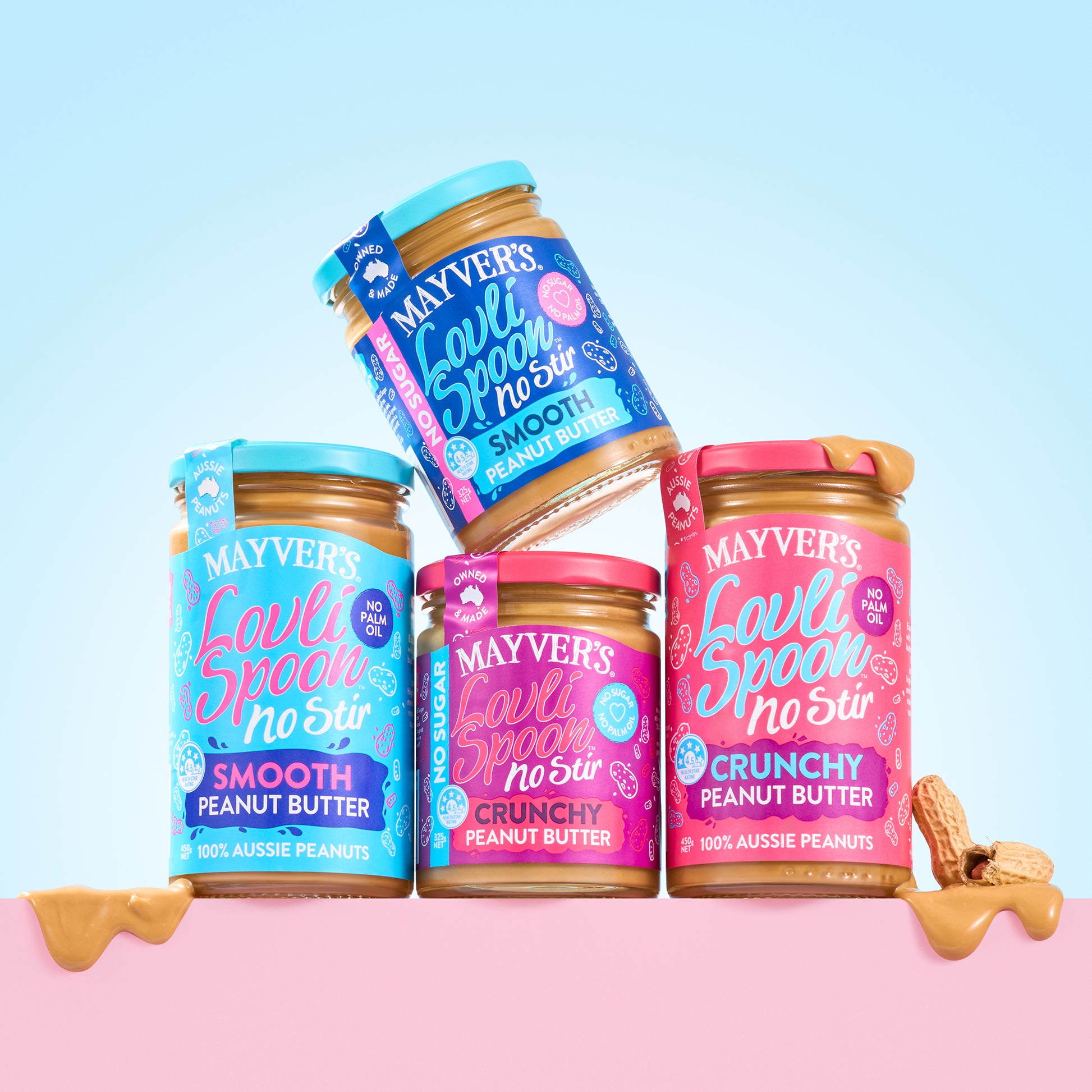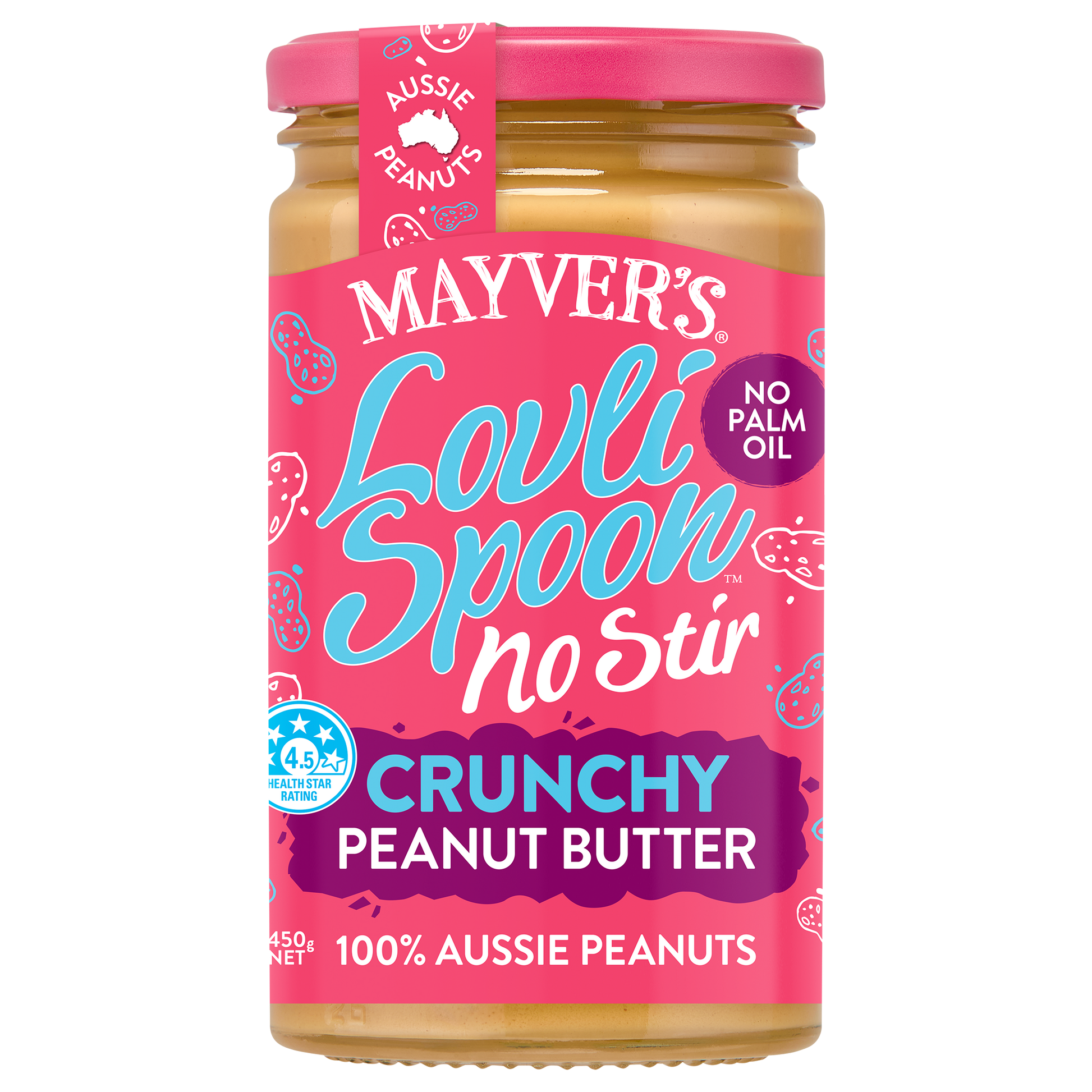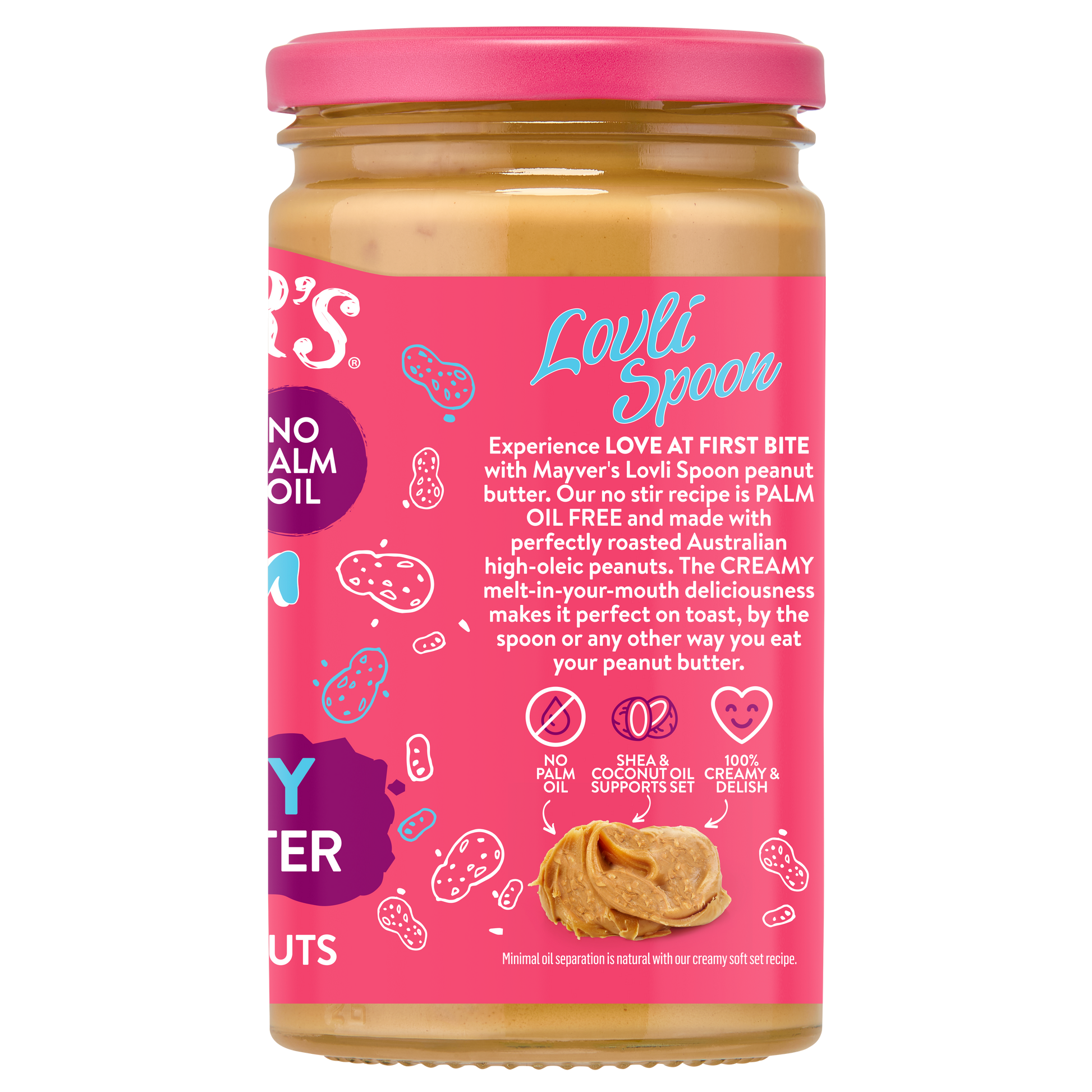 Love at first bite! Mayver’s Lovli Spoon peanut butter is palm oil-free, no stir, and made with perfectly roasted Australian high-oleic peanuts.