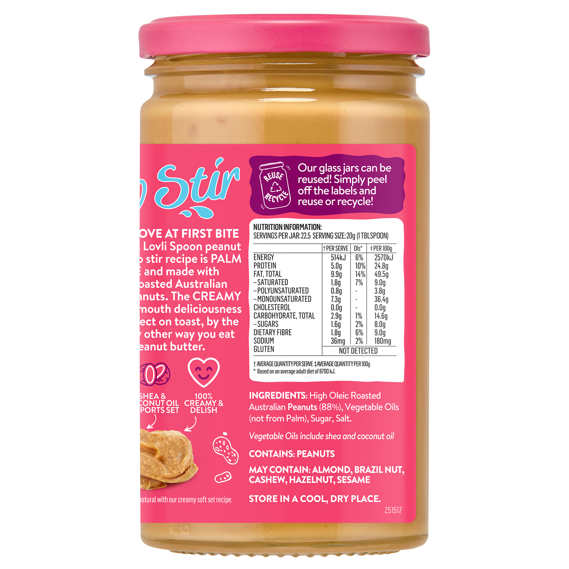 Lovli Spoon was created for Aussies who prefer stabilised peanut butter as it is less oily and is traditionally sweeter than natural peanut butter.