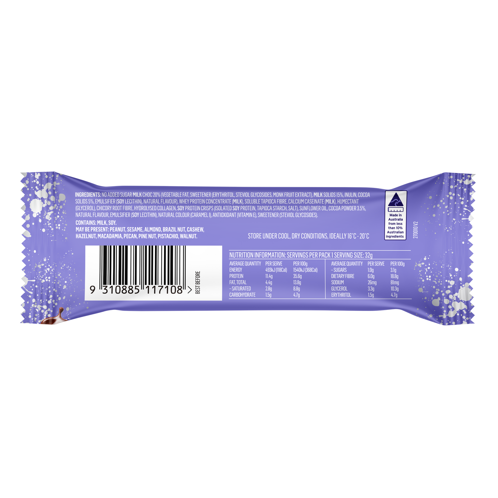 Our Low Carb High Protein bars are our more indulgent health bars. They have delicious flavoured layers and are enrobed in chocolate. They have been created to achieve the best nutritionals in market in terms of lowest carbs, highest protein, lowest sugar etc. All our Low Carb High Protein bars achieve a 5 health star rating. Each bar is 32g in size.