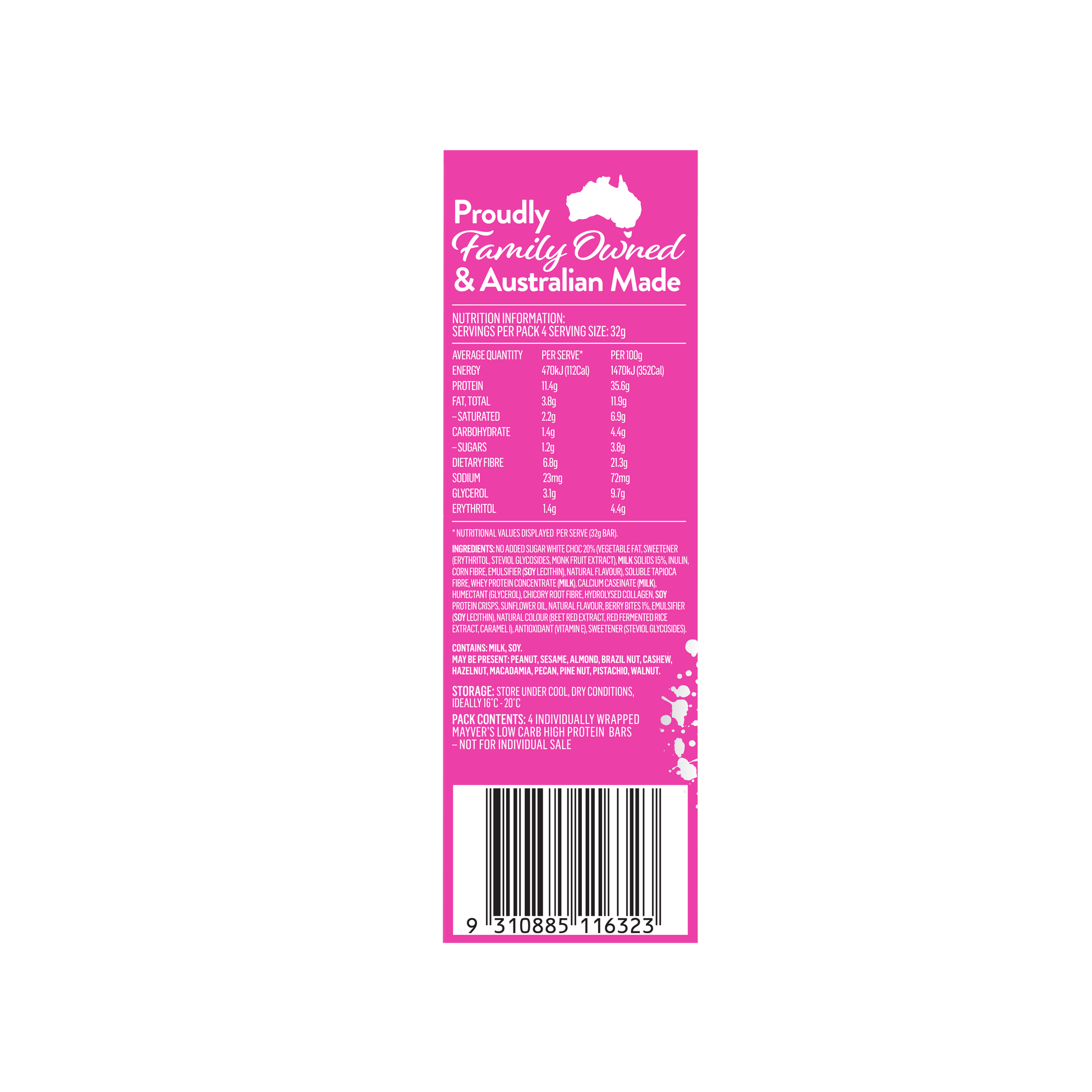 Mayver's Low Carb High Protein White Choc Raspberry Bars 4pk
