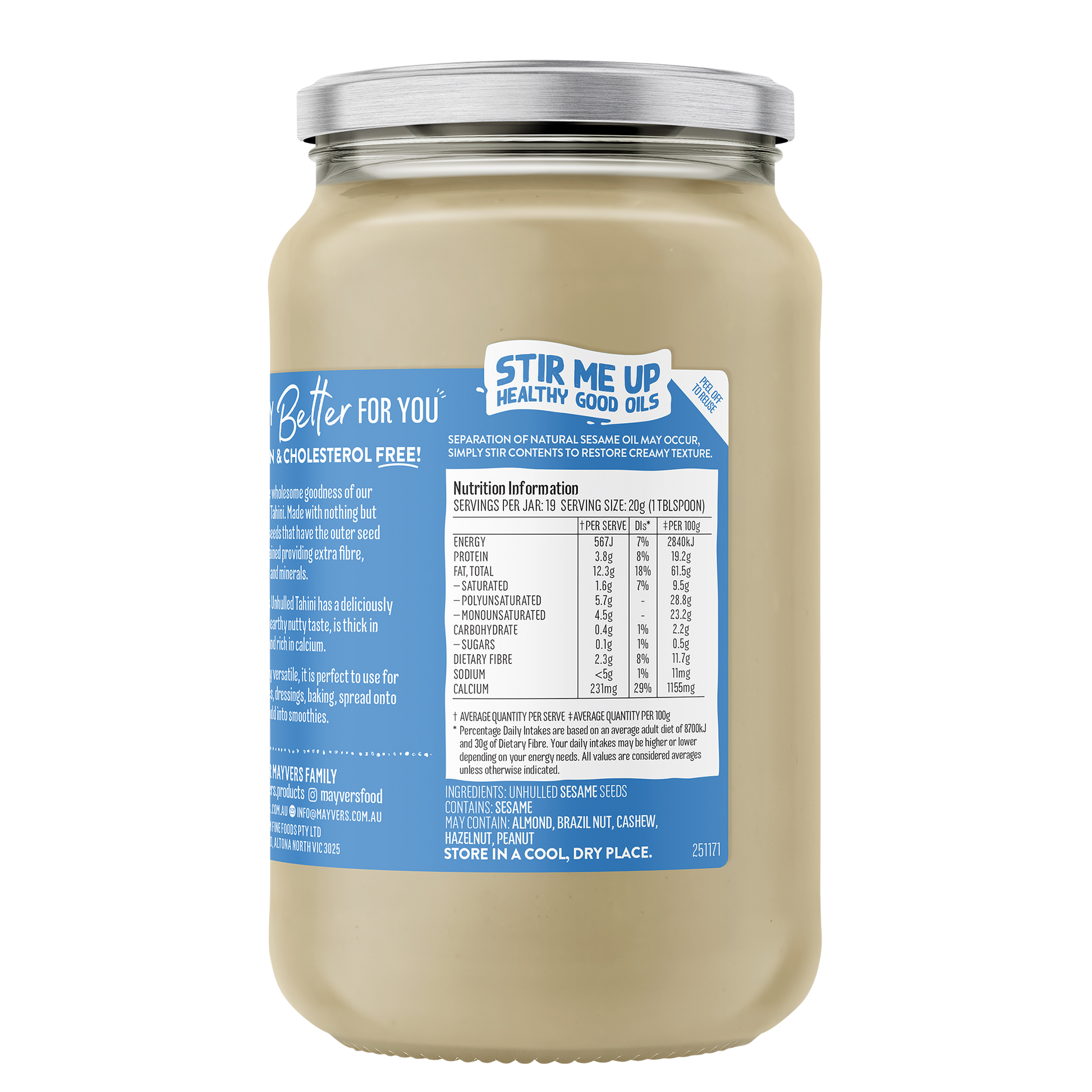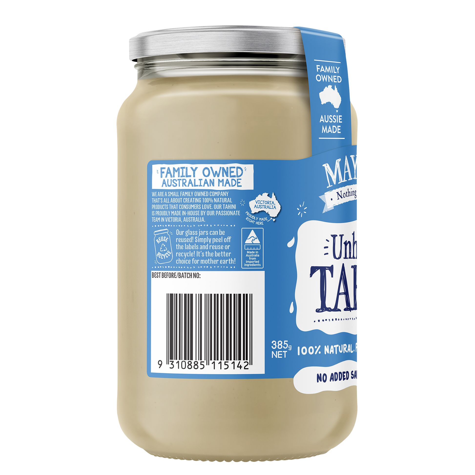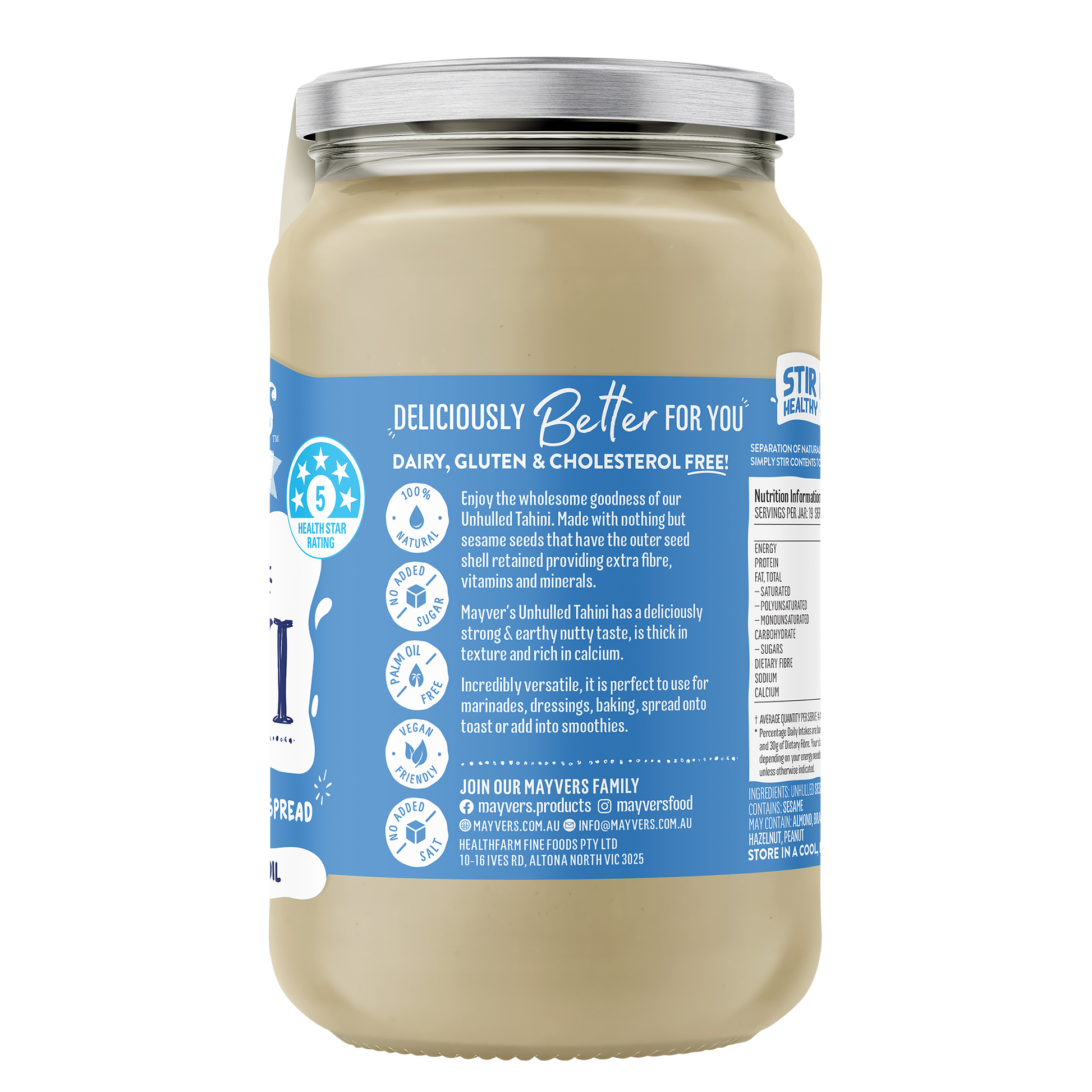 Mayver's Unhulled Tahini is made from just pure sesame seeds in Victoria, Australia. We are so proud to employ locals who have a passion for producing the best quality spreads in the world, supporting local jobs and our local community.